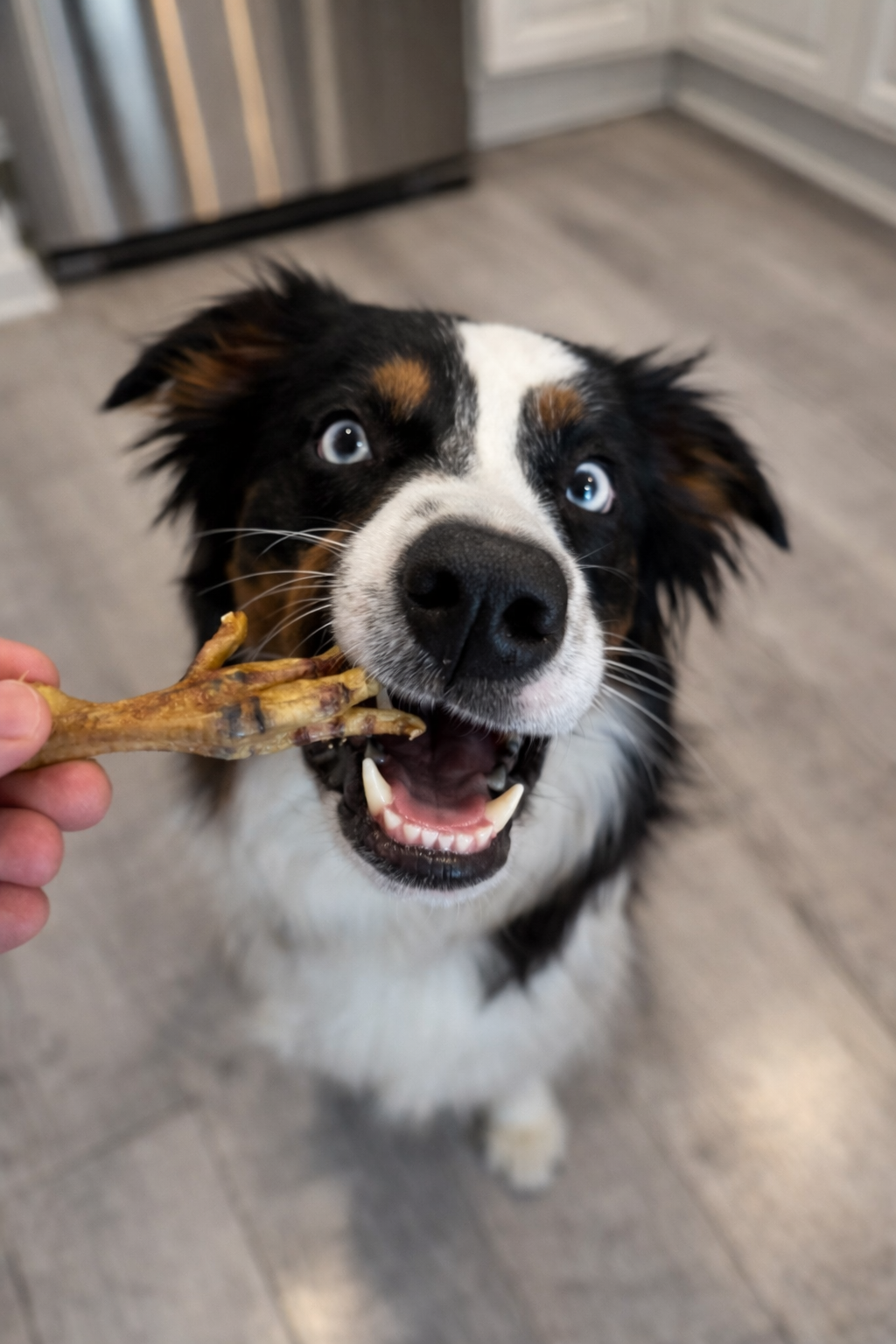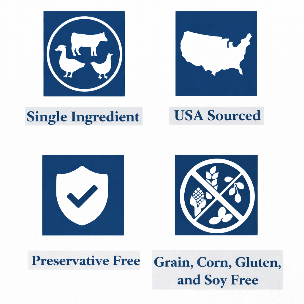 Simply dehydrated, single ingredient treats made in small batches. Nothing added. Nothing needed.